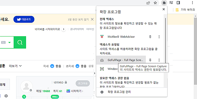 검색 결과 상단의 gofullpage - full page screen capture라는 확장 프로그램이 나오고, 설치를 진행해 주시면 됩니다. 클릭을 해주시면 다운로드 페이지로 이동됩니다. 바로가기